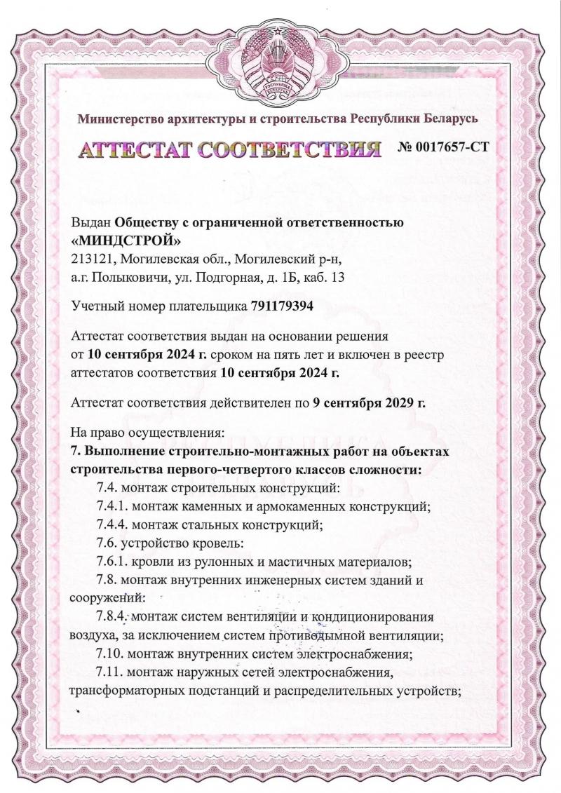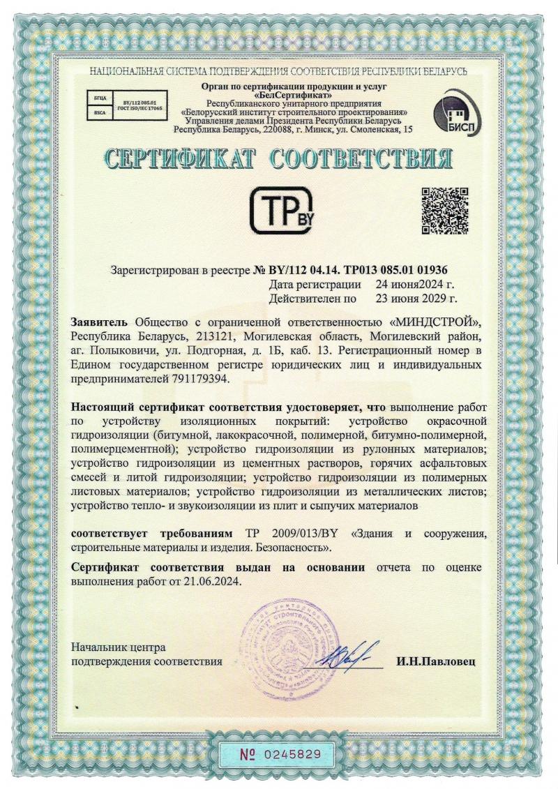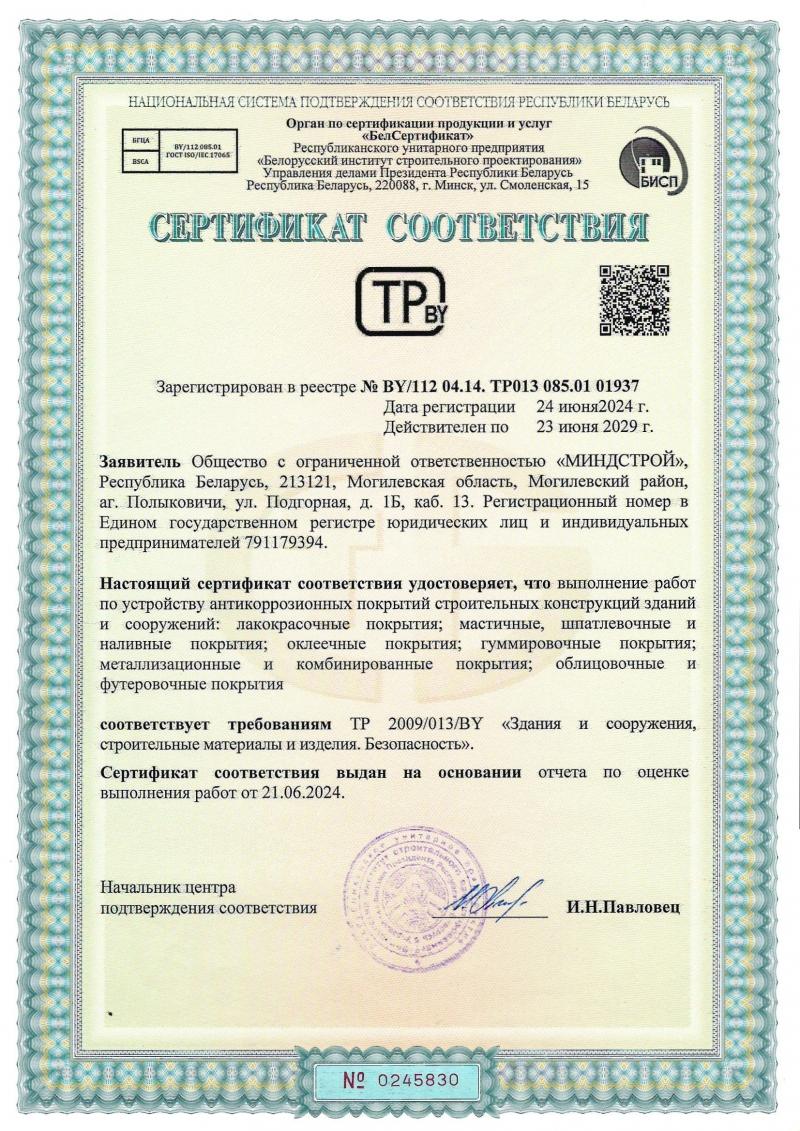 Сертификат соответствия по устройству изоляционных покрытий