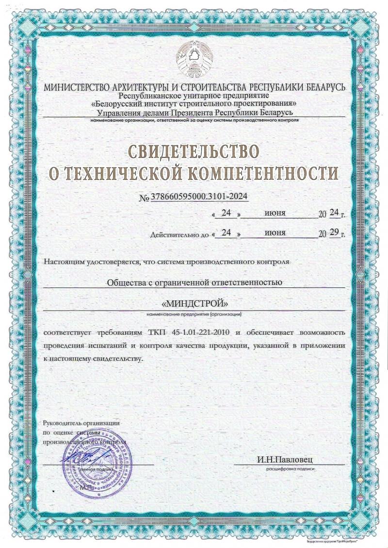 Свидетельство о технической компетентности в области контроля качества