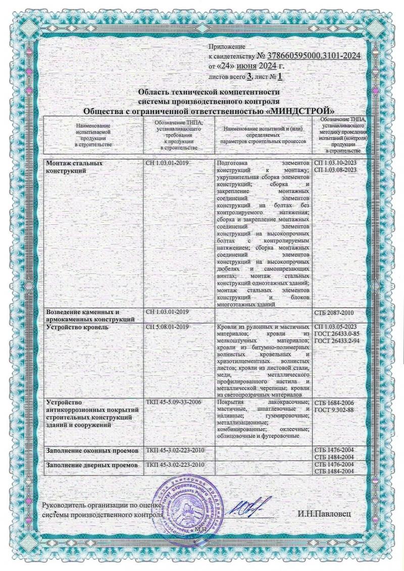 На выполнение перечня СМР на объектах 1-го – 4-го классов сложности